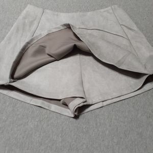 Features: back zipper, skort, skirt front/shorts back, faux suede
