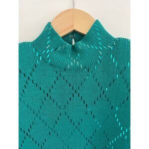 READ St John Evening Mock Neck Knit Midi Dress Women Size 6 Teal Y2K Glam Event