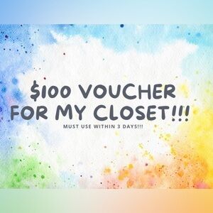 You bid on this for X amount of money, then you get to shop my closet for a $100 item total for the price you paid for the voucher.