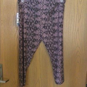 Ready to go purple snakeskin capri 1x new never worn 90 polyester 10% spandex length 29.5 inseam 18 waist left to right 15.5 Beautiful new purple snakeskin capris offer modern and professional style to keep you up to date.