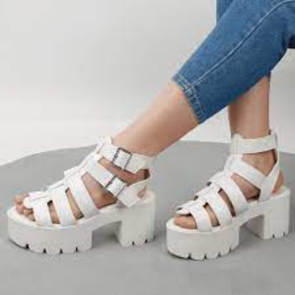 READYSALTED Pair of Womens Chunky Platform Sandals Comfortable Gladiator Open Toe High Heeled with Buckle Ankle Strap Size 11