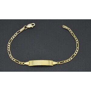 REAL 10K Yellow Gold 5.5" Figaro ID baby Childrens Bracelet + Engraving 1.8 gr