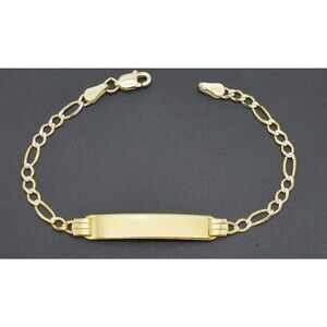 REAL 10K Yellow Gold 5.5 Figaro Link Id Bracelet + Engraving 2.3gr