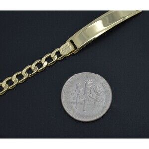 REAL 10K Yellow Gold 6 Flat Curb ID baby Childrens Bracelet + Engraving 3.1gr are a perfect size and weight to take it on and off, fashionable and comfortable to wear. Suit for any occasion, such as work, vacation, club, party, prom, etc. Hurry for stocks are already running low!