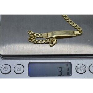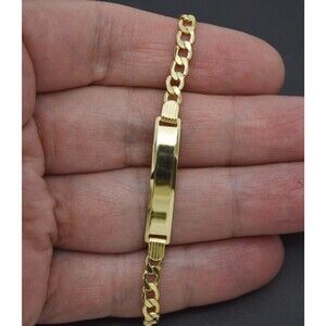 REAL 10K Yellow Gold 6 Flat Curb ID baby Childrens Bracelet + Engraving 3.1gr