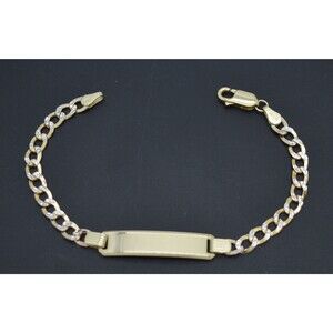 REAL 10K Yellow Gold Flat Curb ID baby Childrens Bracelet + Engraving 3.6 gr 6