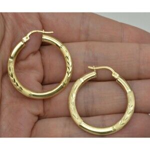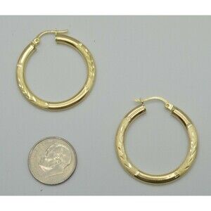 REAL 10K Yellow Gold Large Hoop Diamond Cut Earrings | 30mm x3mm 2.2gr