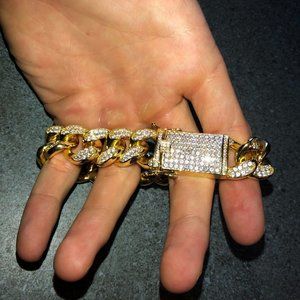 MEN'S 9MM 14K GOLD BRACELET! PLATED THREE LAYERS! REAL GP!