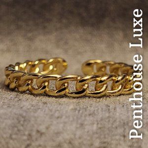 Dainty yellow gold chain band crafted from SOLID 925 sterling silver coated in 18k gold. Guaranteed authentic and will not discolor fingers!! Laser engraved "S925". Adjustable from sizes 6-10. All photos are real, unedited, and property of Penthouse Luxe Jewelry.