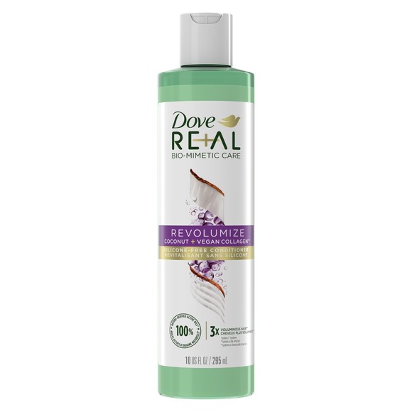 Beautiful, voluminous, and healthy-looking hair is just a wash away. Dove RE+AL Bio-Mimetic Revolumize Coconut + Vegan Collagen Conditioner is perfect to nourish and thicken flat, thin hair. Formulated with 100% nature-derived active oils* and infused with vegan collagen, this conditioner helps to regenerate the look and feel of voluminous, healthy-looking hair. Say goodbye to flat, limp hair with this conditioner as it nourishes and visibly thickens for 3X Voluminous Hair.** *system **system vs flat, limp hair. How to use: Apply this conditioner after shampooing, focusing on mid-lengths to tips. Leave for one minute and rinse. This conditioner for flat hair is formulated with 0% silicones, 0% parabens, has a 100% biodegradable formula*** and a 100% recycled bottle. ***Ingredient biodegradation based on OECD test methods (301, 302 and/or 310) and Principles. Our Dove RE+AL Bio-Mimetic Revolumize Coconut + Vegan Collagen Conditioner is vegan and Dove is PETA Approved.