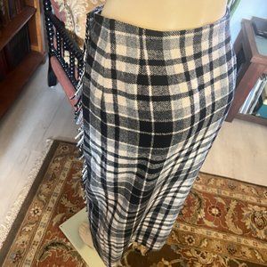 REAL COMFORT:black, bone, grey plaid wool blend wrap skirt