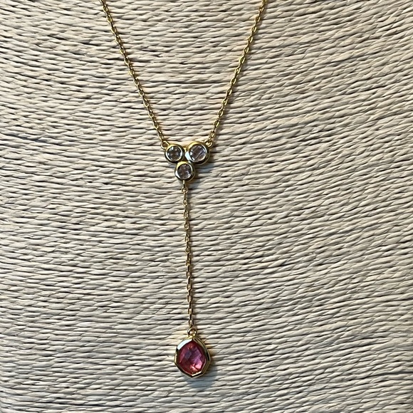 REAL SIMPLE STYLE TALIA NWT YELLOW GOLD-PLATED & PINK/CLEAR CRYSTALS NECKLACE