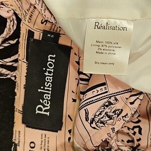 💕REALISATION PAR💕 Venus Babydoll Mini Dress ~ Pink Newspaper Print XS Y2K 90s