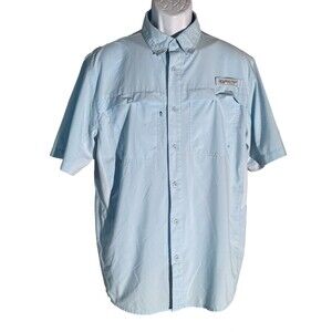 REALTREE FISHING Men's Short Sleeve Button Down Fishing Shirt Blue Medium
