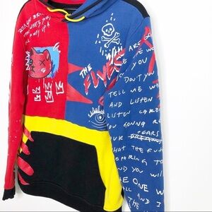 Reason art to wear, Streetwear graphic color block hooded sweatshirt with kangaroo pockets.
