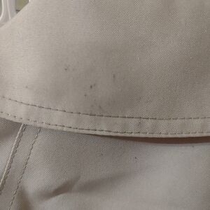 This jacket has a couple spots on the back and sleeve that will probably come out in the wash. I didn't wash it because it is new with tags and didn't want to ruin the tags. Please see pictures for details