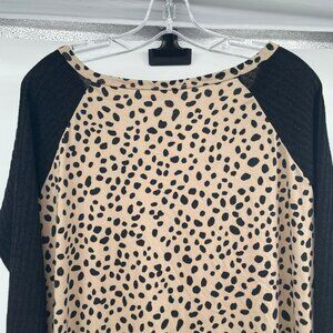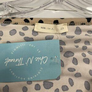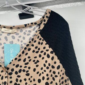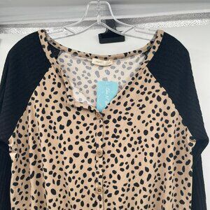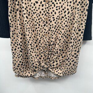 REB. in J. Womens Button Up Top Tie Hem Tan/Black Spotted Size XL New