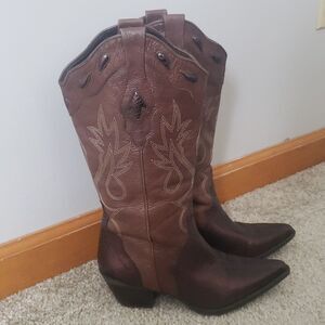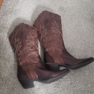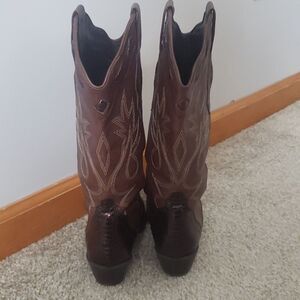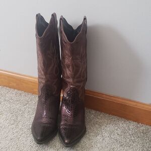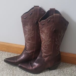 REBA Cowboy Boots sz 6.5 Stitched Brown Bronze Snakeskin Leather
