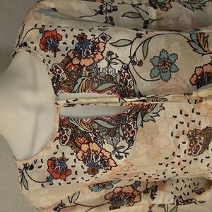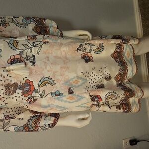 Chic boho dress featuring a floral pattern. Includes a stylish tassel tie at the neckline. Perfect for casual outings.