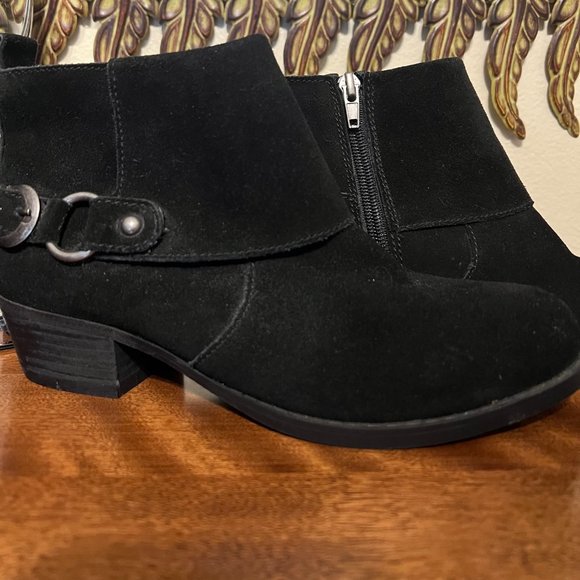 REBA Whispar Ankle Boots, suade leather buckle low heel