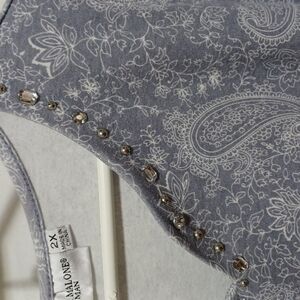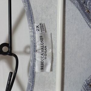 REBCCA MALONE WOMENS TOP SIZE 2X IN A BEAUTIFUL GRAY BACKGROUND WITH BEING +