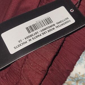 REBDOLLS Essential Wide leg Pull On pants with Pockets Burgundy 1x NWT