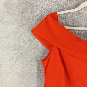 REBECCA B Sheath Red Dress Size 14 Women Off The Shoulder Knit Elegant Zip