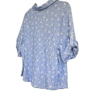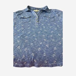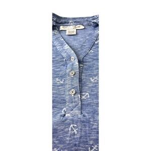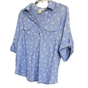 Womens, Size: 1X Color: Light Variegated Blue with White Anchor Pattern NWOT - Super Good Quality Condition - no rips, tares, stains, pills - Like New! Adorable, comfortable top - pairs nicely with shorts, casual pants or jeans; Spring & Summer; short roll-tab sleeves; pointed collar that opens to a v-neckline with placket & 3 buttons; 2 chest pockets with a button; curved hemline; this Cotton & Polyester fabric blend provides soft material with a good amount of stretch