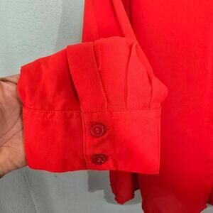 REBECCA MALONE WOMAN Red 1X Button Down Top Blouse Gold Stud Collar Long Sleeve