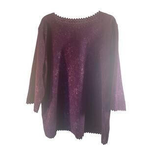 REBECCA MALONE Women’s Deep Purple 3/4 Length Sleeve Top / Size: 2X