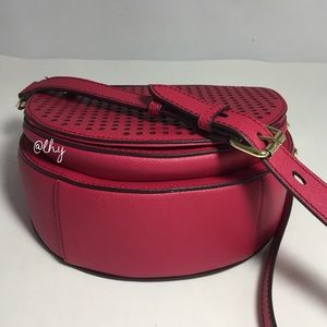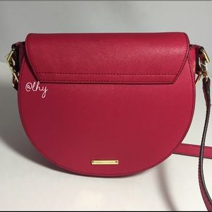 Authentic brand new Rebecca Minkoff Astor Saddle bag. Saffiano leather exterior in "berry" (fuchsia pink) with light gold hardware and perforated flap. Approx 7.75"W x 9"H x 4"D. Adjustable crossbody strap drop up to 23". Detachable strap. Exterior zip pocket on front flap. Logo nameplate on rear exterior. Open slip pocket under flap plus interior slip pockets. Dustbag not included. Tags detached and included. ❌❌NO TRADES NO PP NO EXCEPTIONS❌❌