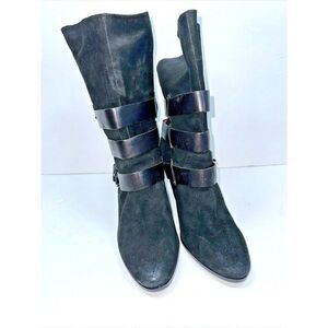 REBECCA MINKOFF Black Suede heeled Audrey Buckle Ankle Booties Womans 10 M