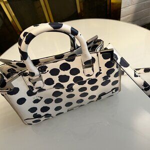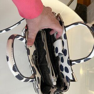 REBECCA MINKOFF Dot Pattern 2WAY Shoulder Bag.Used about 3 or 4 times.Excellent condition and looks like new. It does have the dust cloth with it. The polka dots are a very dark blue or black depending on the way you look at it in different lighting..