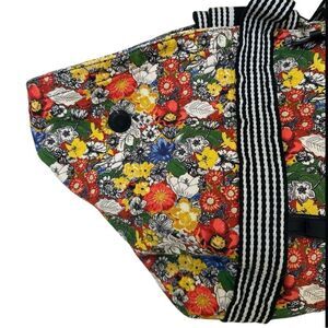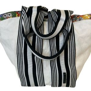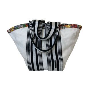 REBECCA MINKOFF Fan Reversible Tote Bag is gentle used. This tote is reversible it has some worn to the cream color. Comes with double handles, 5" drop, double shoulder straps, 10" drop, magnetic closure, no pockets, reversible design with floral pattern.