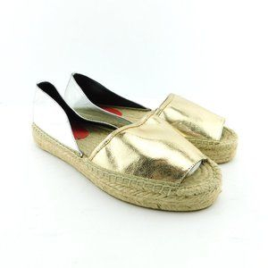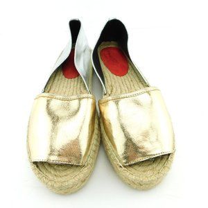 REBECCA MINKOFF Gold Silver Metallic Leather Flat Espadrille Slip On Shoes 7