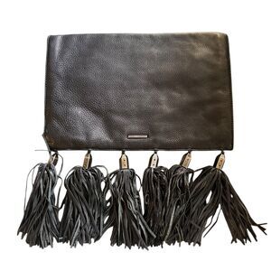 REBECCA MINKOFF Kinga Leather Tassel Clutch Black