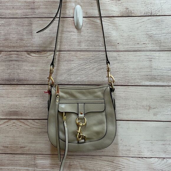 EXCELLENT CONDITION REBECCA MINKOFF LEATHER SADDLEBAG WITH DOG CLIP IN CREAM
