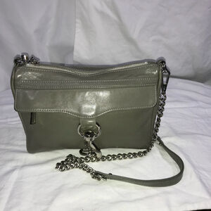 REBECCA MINKOFF Mini M.A.C Gray Leather Chain Strap Crossbody