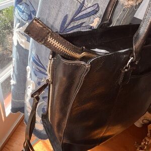 Soft leather and Simple studs, artfully woven fringe, and spacious design makes this a perfect bag for everyday use. This well-crafted bag is complete with a stylish top 7.5” drop handle - 13"W x 11"H x 4”D •Custom silver hardware •1 exterior zipper pocket -Top zipper closure •3 interior slip pockets •1 interior zipper pocket •Exclusive lining