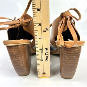 REBECCA MINKOFF Size 6 Eden Leather Criss Cross Curved Wedge Peep Toe Tan