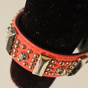 REBECCA MINKOFF Studded Hot Pink & Silvertone Snap on 7"L Bracelet