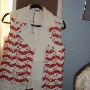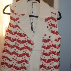 ADORABLE RED FLOWER JEAN VEST, BRAND NEW NEVER WORN, SIZE SMALL