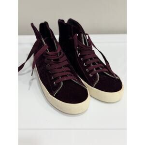 REBECCA MINKOFF Women's Maroon Velvet Sneakers Size 8