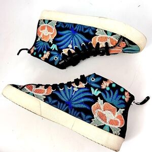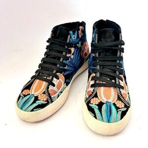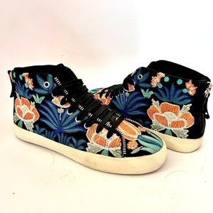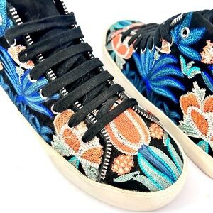 Rebecca Minkoff Zaina Black Floral Embroidered lace up Mid Sneakers Size 6