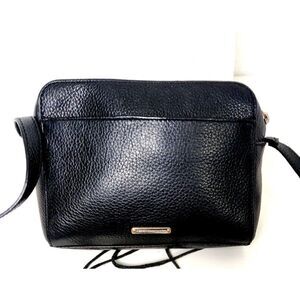 REBECCA MINKOFF BLACK GENUINE LEATHER SHOULDER BAG HANDBAG ZIP TOP CAMERA BAG