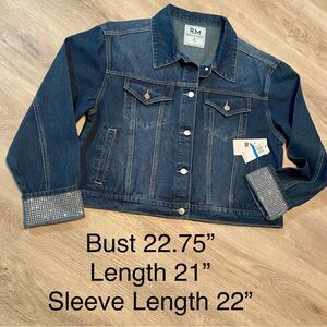 REBECCA MINKOFF DARK WASH DENIM JACKET WITH RHINESTONE EMBELLISHED CUFFS XL NWT