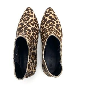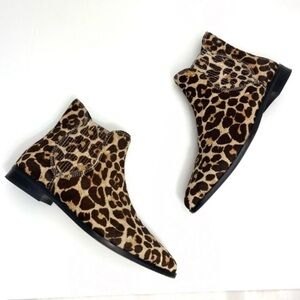 REBECCA Minkoff Maydsin Leopard Pointed Toe Calf Hair Ankle Boots in Beige
