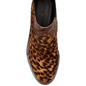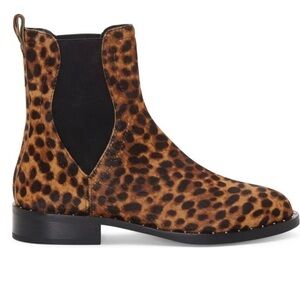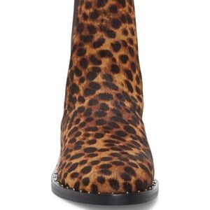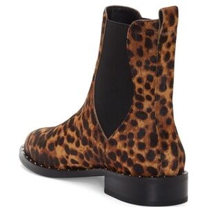 Rebecca Minkoff Chelsea boots have shining studs detailing the welt of an updated boot clad in leopard spotted genuine calf hair which provides an ultra chic take on the animal print trend.