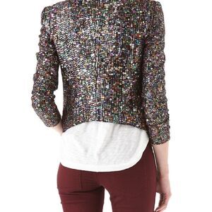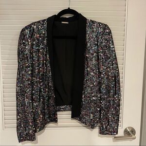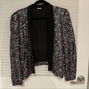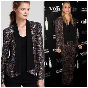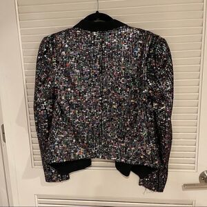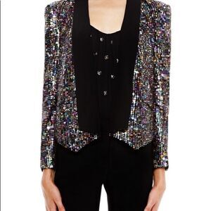 Rebecca Minkoff Stunning multi color Sequin Jacket. Fully lined and absolutely gorgeous!! Black trim lapel and open front styling Excellent condition size XS. Purchased for $798; will decline all low ball offers immediately.