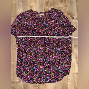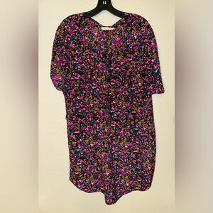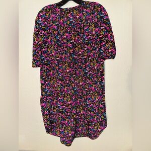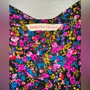 REBECCA TAYLOR 100% Silk Multicolor Floral Short Sleeve Dress Size 12